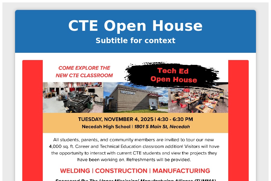 Necedah MS/HS Update MId-September 2025 MS/HS Parent Open House - Middle School Showcase Night - October 1! O. . .